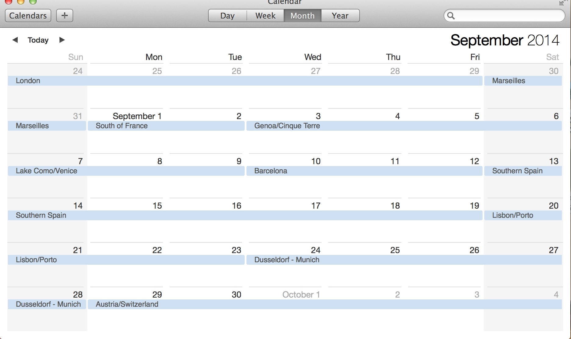 • Creating a rough calendar that I could follow: …but could completely disregard, which is apparently what happens when you’re backpacking.  On Myers-Briggs (yes, I brought it up), I’ve tested as both P (perceiving) and J (judging).  So while I am somewhat organized, I’m also really comfortable with spontaneity.  I am a person who needs a possible plan, but I don’t need to end up doing any of it.  I think this balance will be useful during my trip.