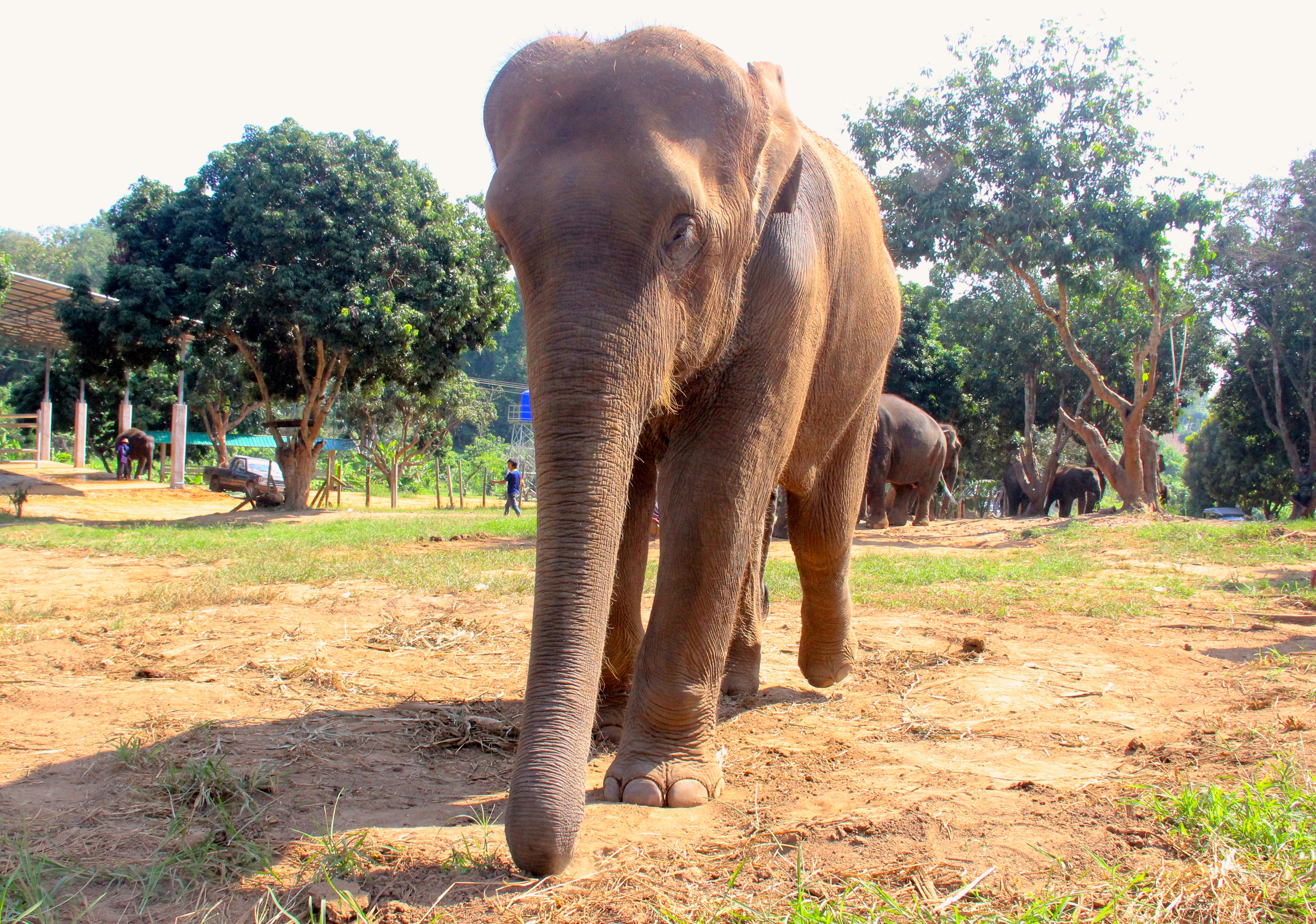 IMG_6741According to our guide, there are 5,000 elephants in Thailand.  And unfortunately, abuse is still rampant.  Elephants are exploited for all sorts of purposes. Often, they will be expected to do tireless amounts of work and are speared in the ear, which is an even bigger problem because their blood doesn’t coagulate like ours does.  Elephants are used to beg for money and will often be injured from stepping on concrete (which causes them to lose their very keen vibration sense) or from car accidents, when the elephant will be toted in a trailer.  They are commonly found locked-up with chains on their IMG_6739heads and body in the middle of the jungle.  There is a belief that eating a part of the elephant’s trunk will make you powerful and the ivory is incredibly expensive, which means that elephants are in danger of poaching as well.  The popular elephant riding camps, which are right down the road from the park, will put wicker baskets on the backs of the elephants and load them up with people.  An elephant can carry 400 kilos, but the chairs used at these camps are known for breaking their bones, which leads to problems standing, trouble eating, and eventual death.