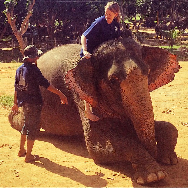 Riding an elephant in Chiang Mai. (And the next day, wondering why my legs were sore and realizing it was from riding an elephant.)